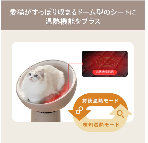 愛猫が安らげるよう温熱シート搭載で、さらに体重測定もできるキャットドームつき