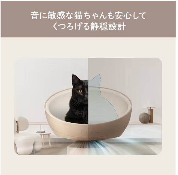 ペットモードの設定で、キャットドームで愛猫が休んでいる間は静音運転に切替