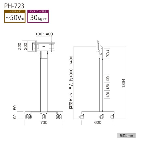 ●総耐荷重:50kg(取付ディスプレイ:30kg以下)