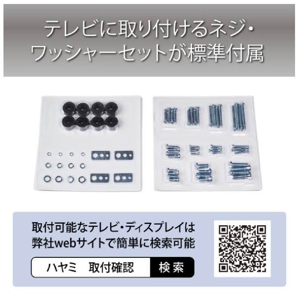 ●付属品:ディスプレイ取付ネジセット ※テレビ背面形状や端子位置によって、一部取付できない機種があります。ハヤミ工産Webサイトにて、取付確認済みの推奨テレビ/ディスプレイをご確認いただけます。