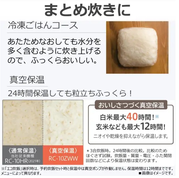 ●保温時間※2:真空保温 白米40時間(エコ炊飯・玄米・麦ご飯・雑穀米 保温12時間)