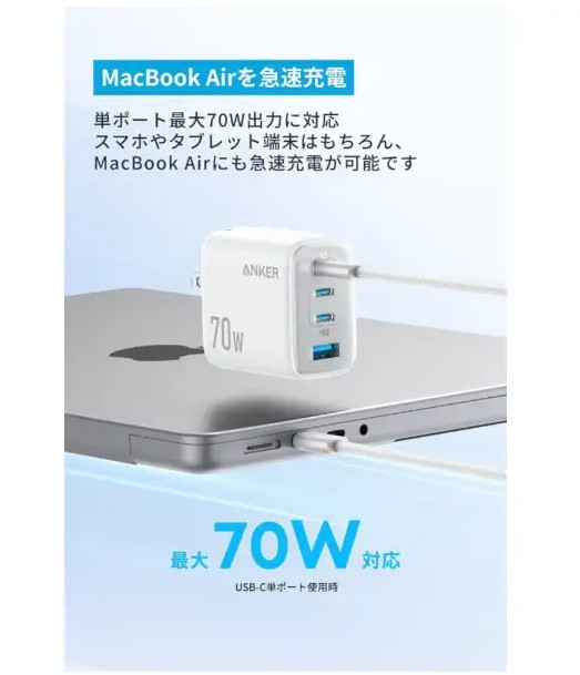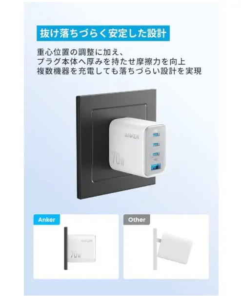 A121CN21 急速充電器 Anker Zolo Charger 70W、4 Ports ホワイト A121CN21 4ポート /USB Power Delivery対応 アンカー・ジャパン Anker Japan